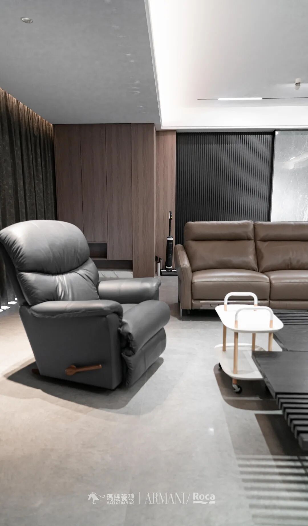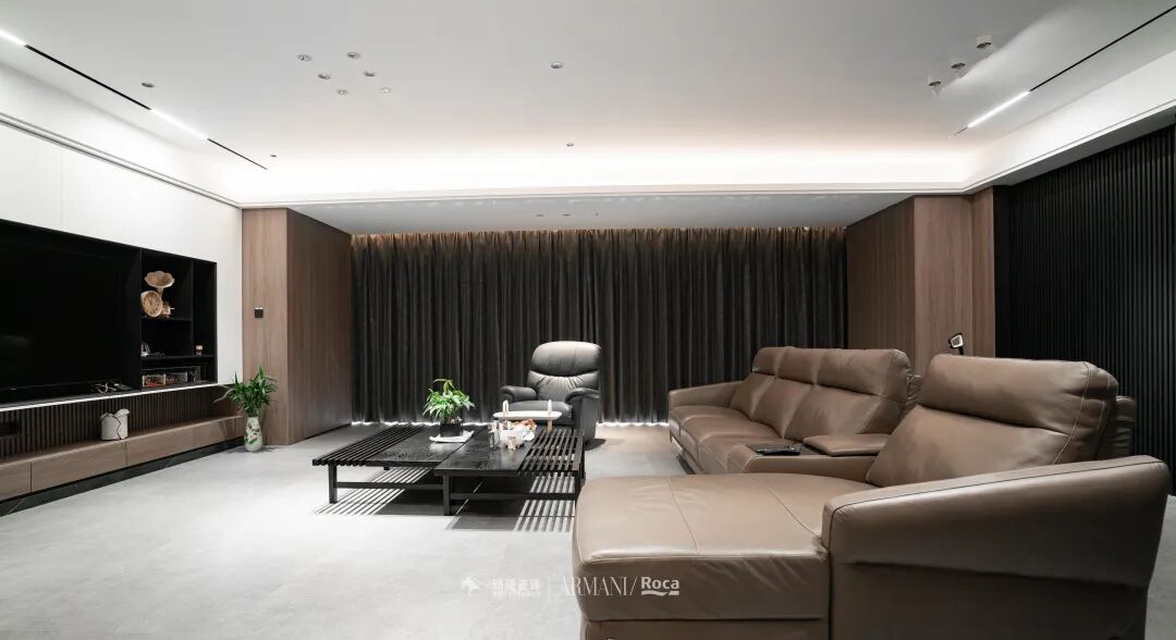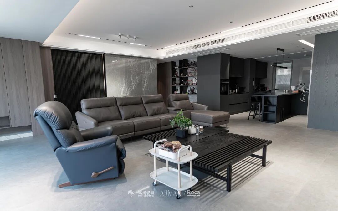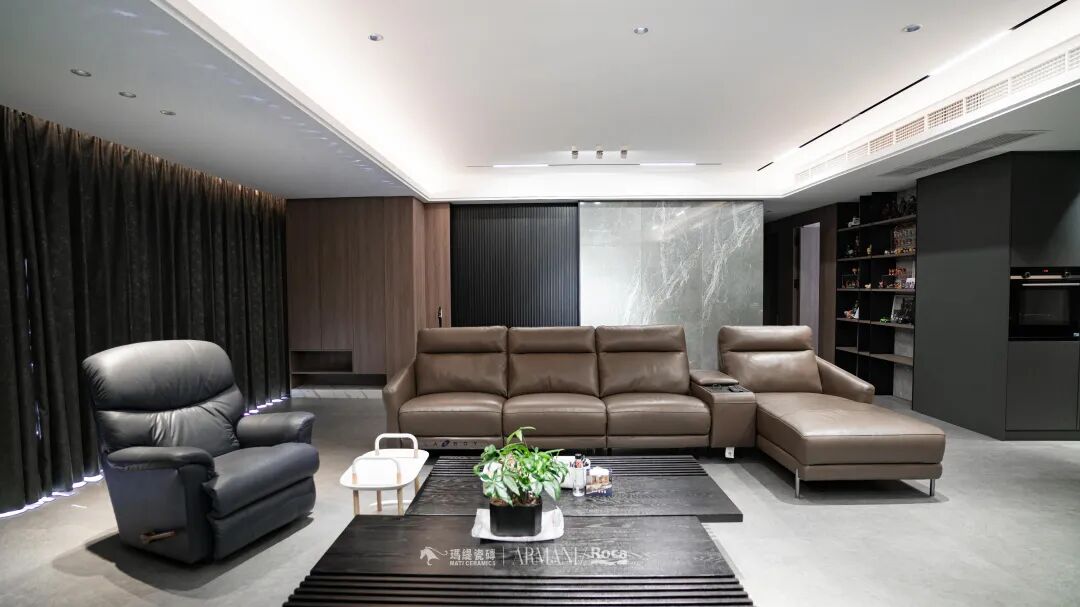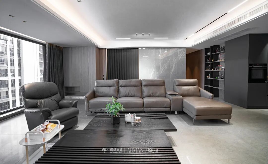 在与设计师沟通后,设计上选择的是现代简约风,足够大的空间,足够大的视野,以灰+黑+棕作为主色承载整个空间的基调。