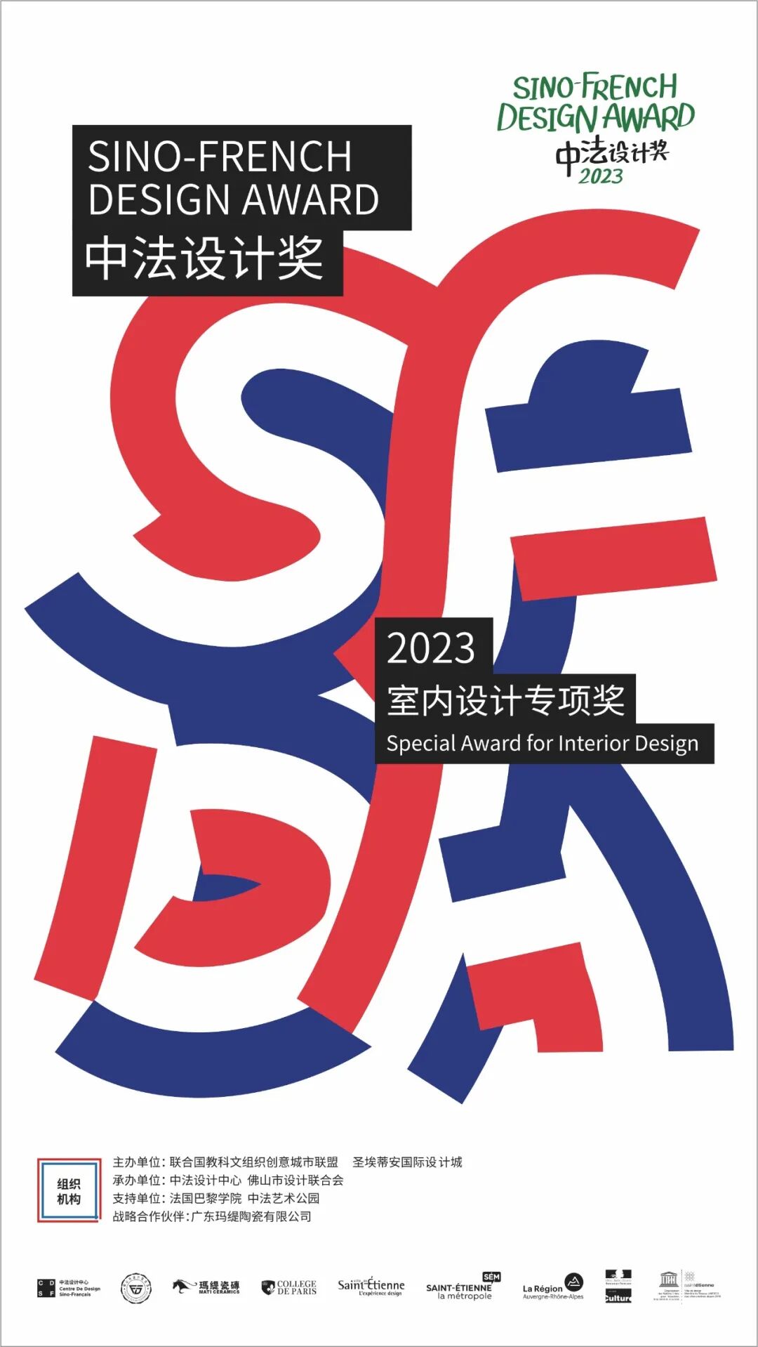 中法设计奖(SFDA)由联合国教科文组织创意城市联盟、圣埃蒂安国际设计城主办,是基于圣埃蒂安国际设计双年展平台而创立的国际设计奖。