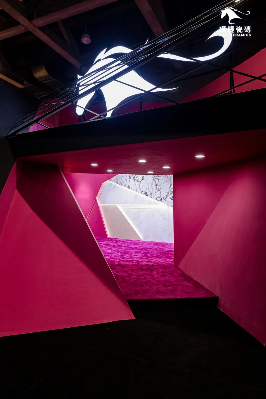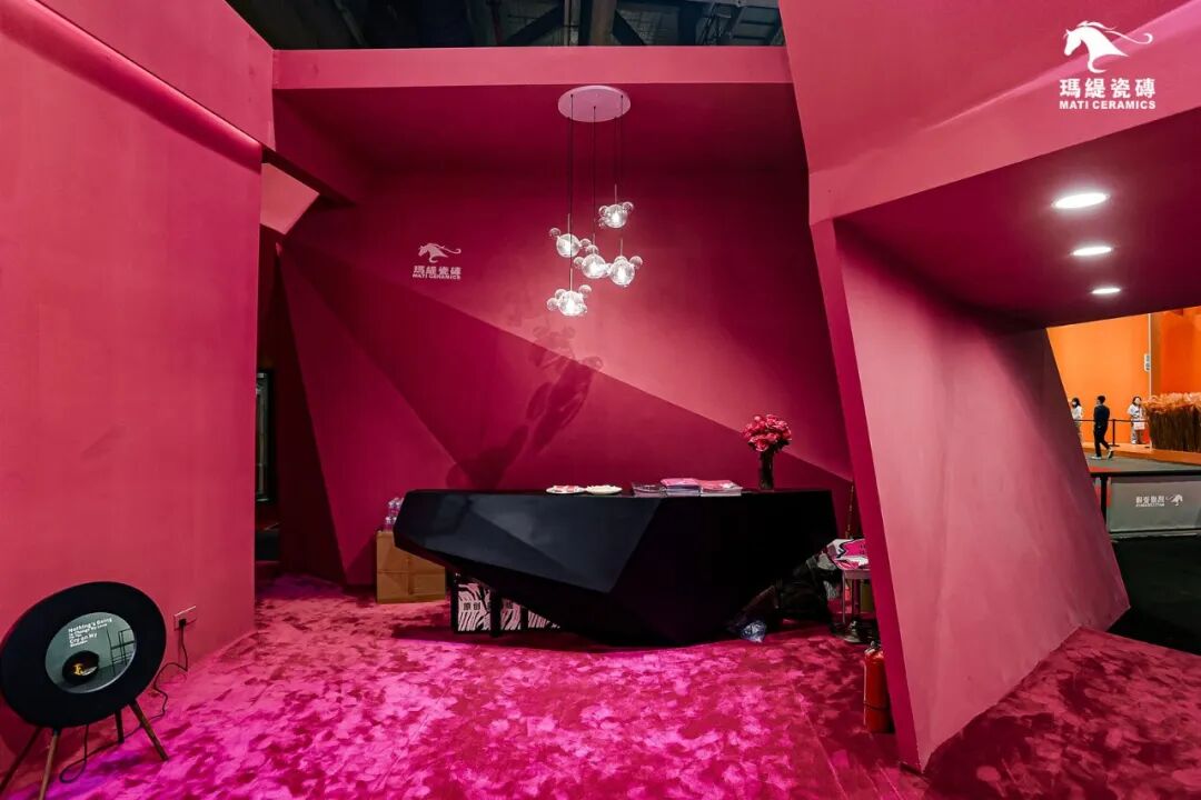 以出挑而大胆的黑色和玫红色撞色拼接而成,浪漫、梦幻、艺术成为整个展厅的视觉符号,速写了浪漫主义者的梦幻情怀,成为了本届广州设计周的热门打卡点,斩获1万+人次观展热潮。