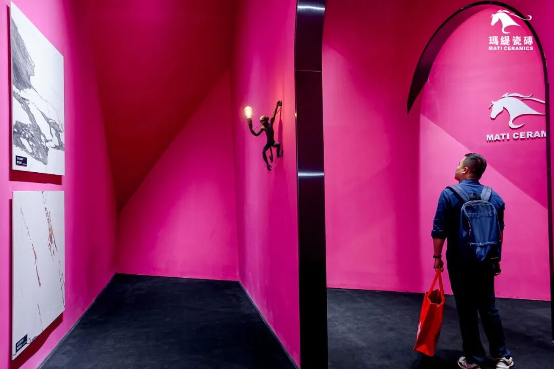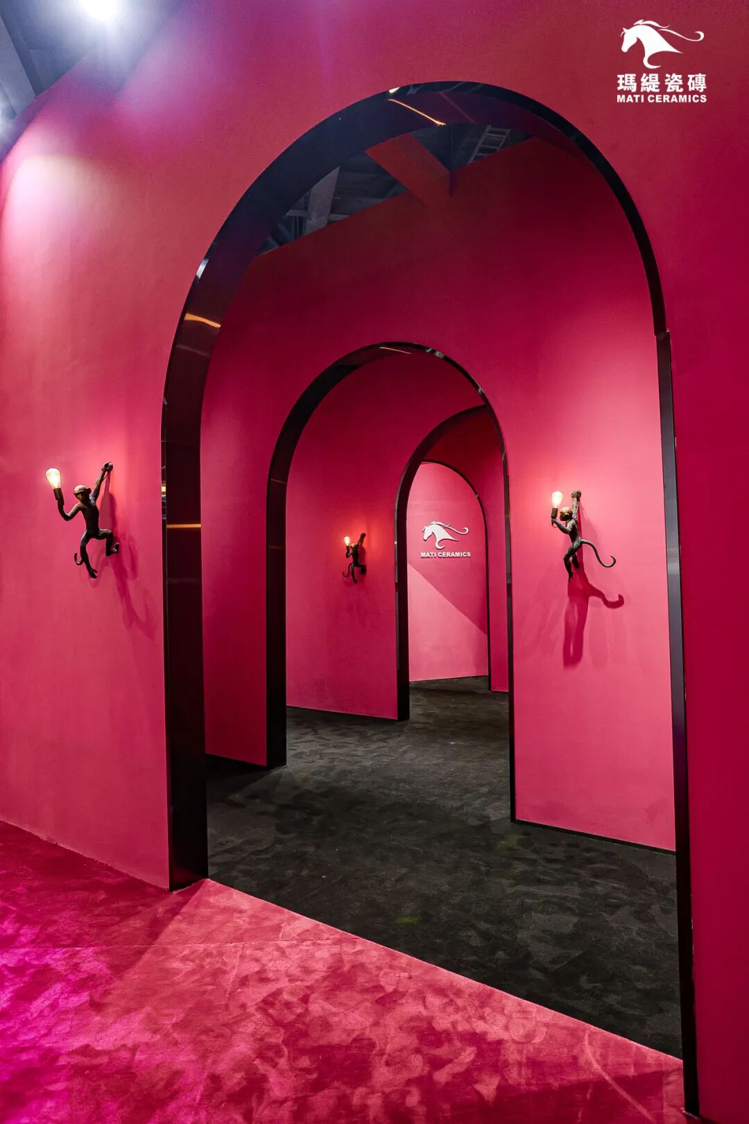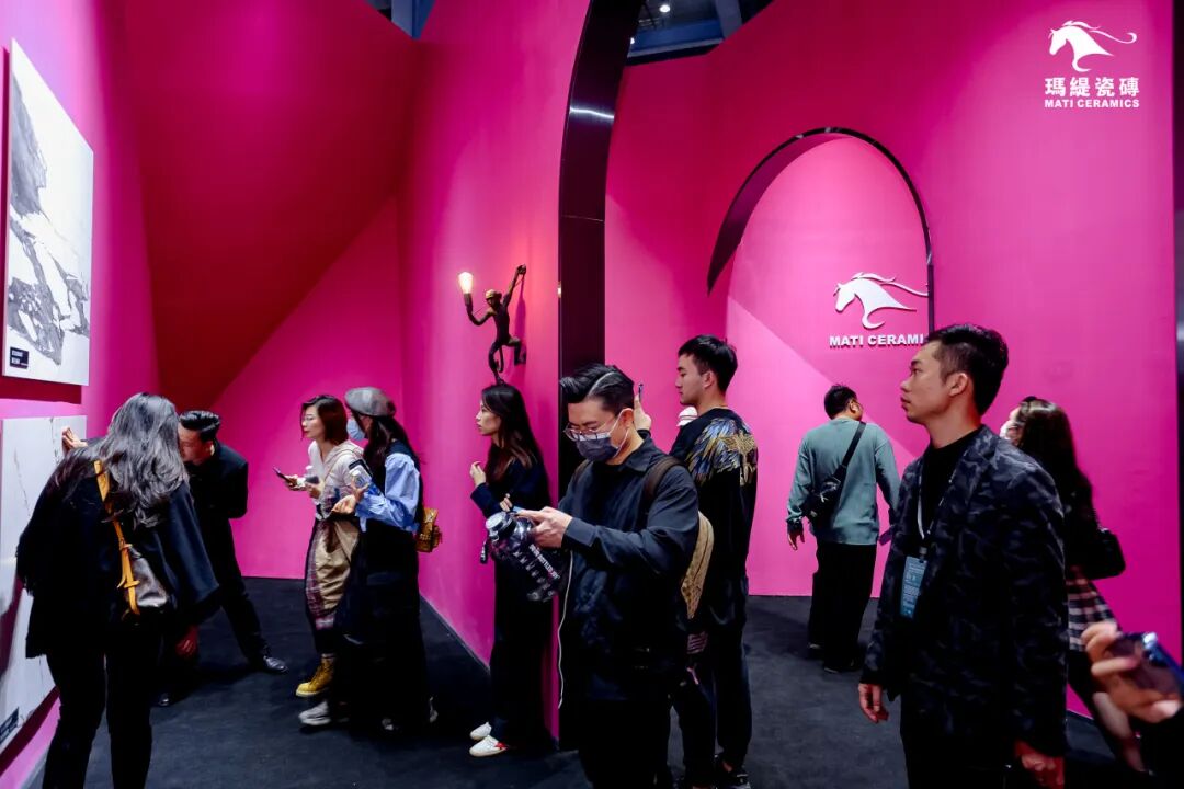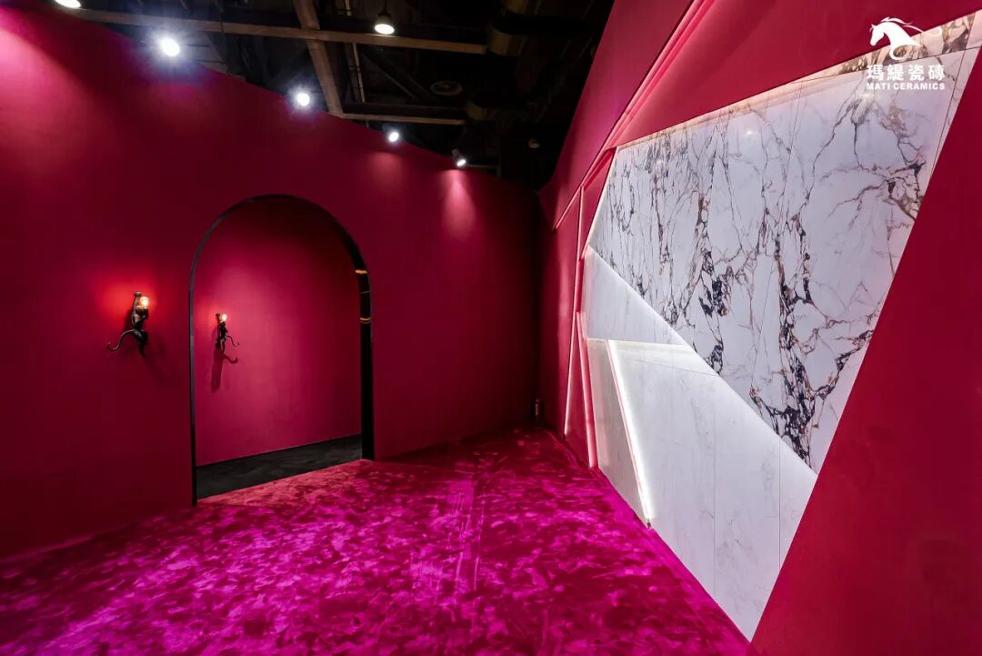 玛缇展馆通过产品设计、艺术陈列,展厅氛围,透过极具张力的色彩,烘托出浪漫的气息,以生活化的场景塑造来引起观者内心的共鸣、最终抵达人们对美的期待与幻想,用场域叙述材料特有的故事性,让产品成为吸睛的亮点,为设计师带来启迪,也是玛缇瓷砖参展广州设计周最大的意义和价值。