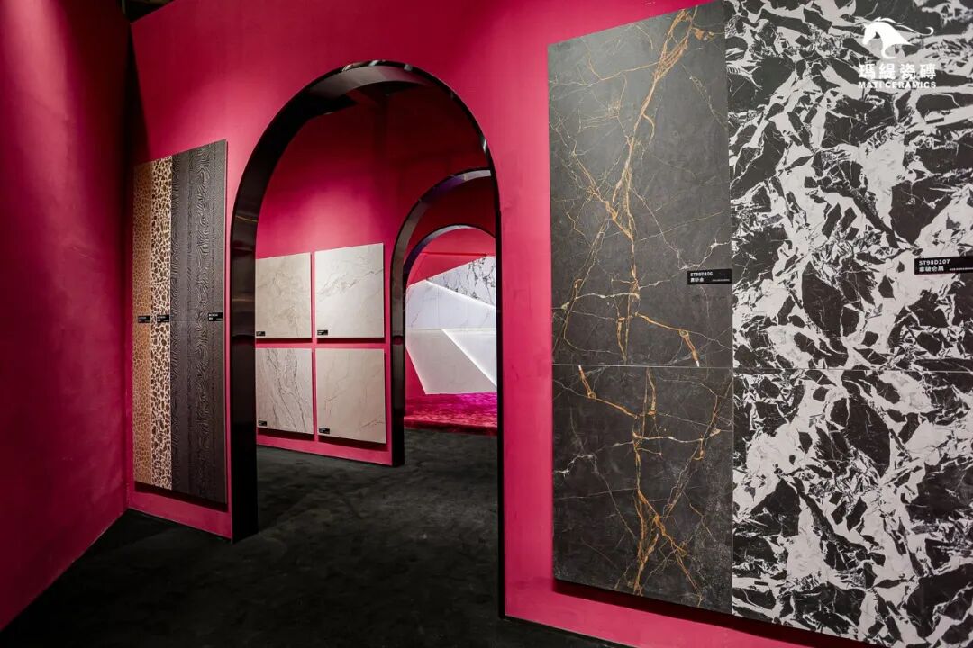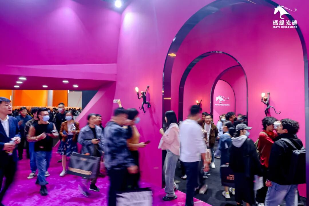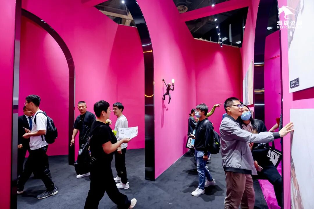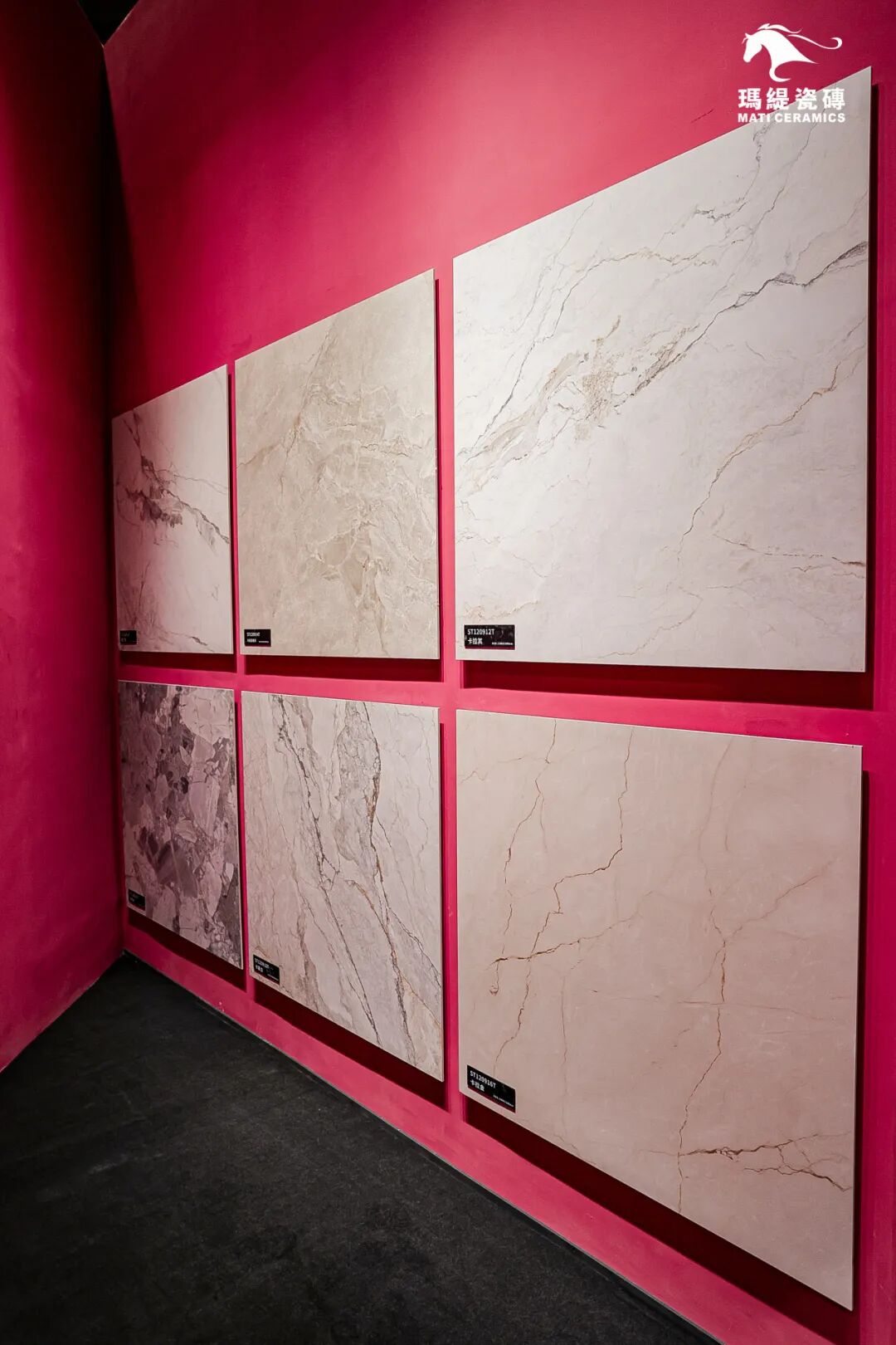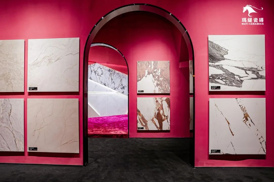 玛缇展馆通过产品设计、艺术陈列,展厅氛围,透过极具张力的色彩,烘托出浪漫的气息,以生活化的场景塑造来引起观者内心的共鸣、最终抵达人们对美的期待与幻想,用场域叙述材料特有的故事性,让产品成为吸睛的亮点,为设计师带来启迪,也是玛缇瓷砖参展广州设计周最大的意义和价值。